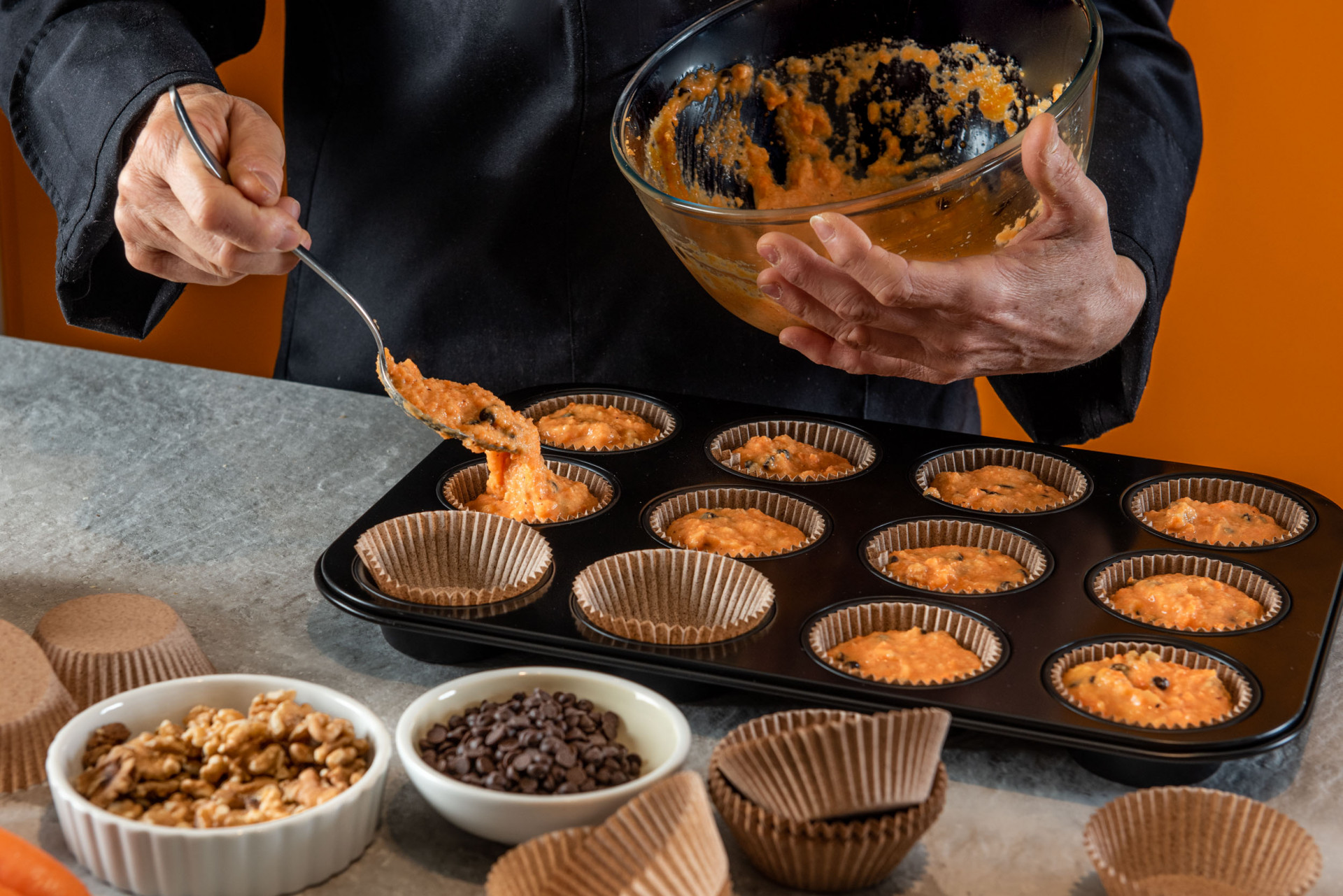 Inserire tutti gli ingredienti (ad eccezione dei gherigli di noce e delle gocce di cioccolato) all’interno di un mixer e azionare fino ad ottenere un trito fine. Aggiungere al composto le noci spezzettate grossolanamente e le gocce di cioccolato, quindi mescolare per amalgamare gli ingredienti.